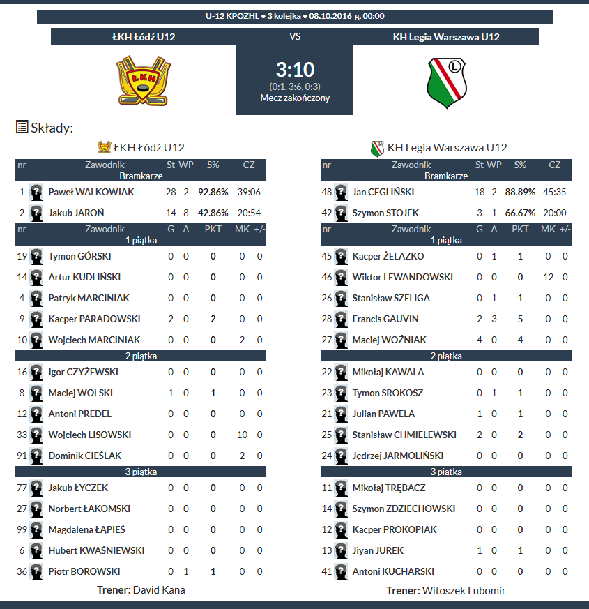 ŁKH Łódź -- 3:10 -- KH Legia Warszawa