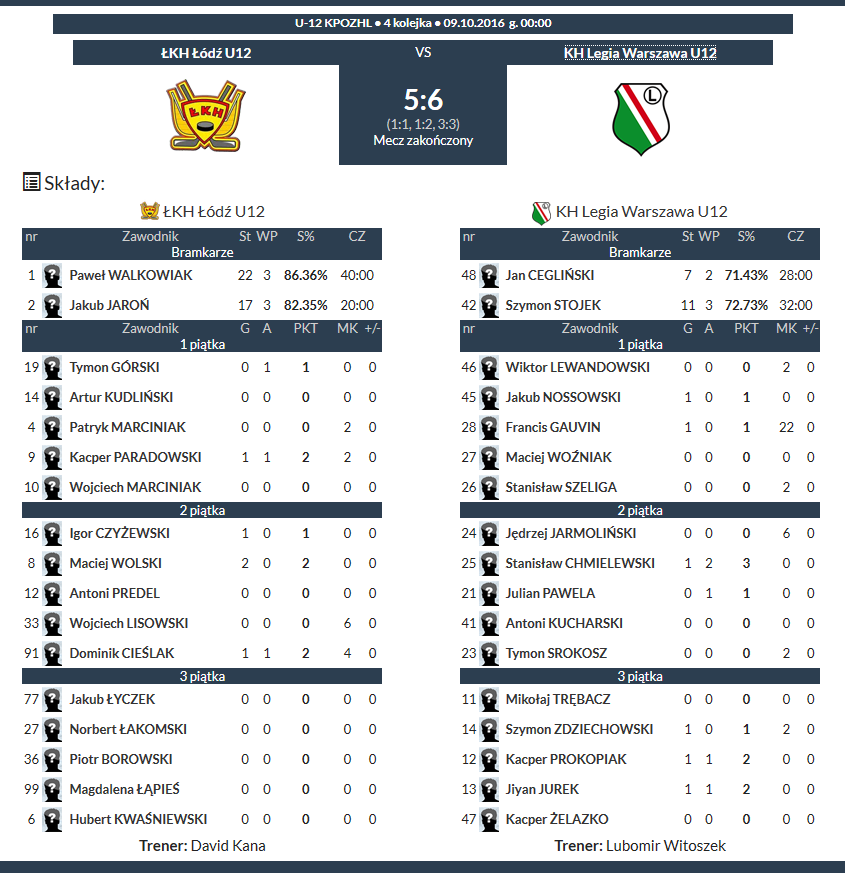 ŁKH Łódź -- 5:6 -- KH Legia Warszawa